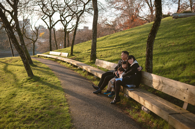 Granville Island is a perfect spot for a family session, full of interesting little streets, every building looking different, the little boats and houseboats are always a hit and did I say playground? What about THE VIEWS ! The whole city on your palm. It's colourful, eye catching. When cold, you can warm up at the Public Market. It has definitely potential to be a fun family day.